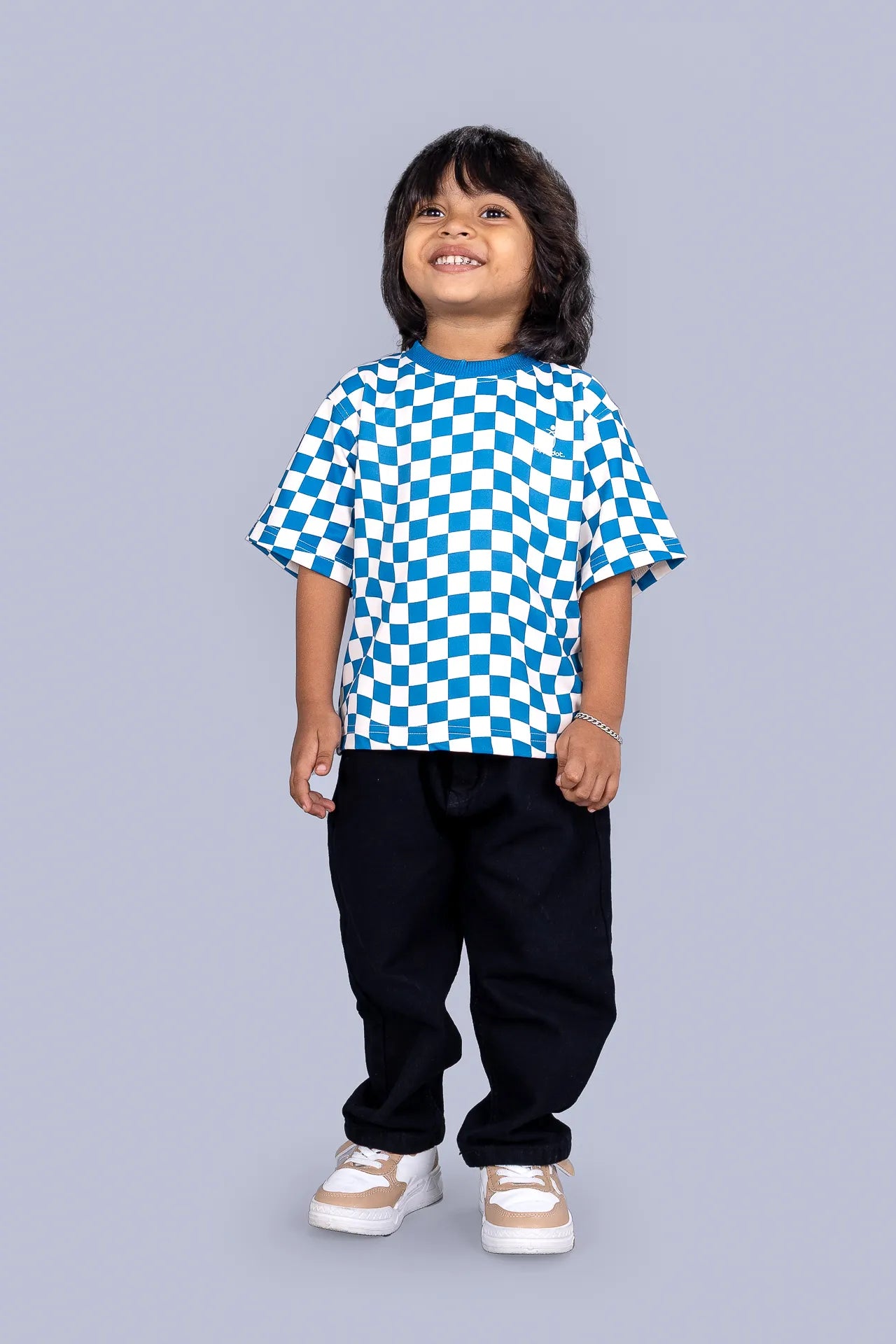 This BOYS CHECKED PRINTED BLUE TSHIRT is perfect for all seasons with its stretchable material and comfortable wear. The blue and white checked print adds a stylish touch to any outfit. Stay cool in the summer and warm in the winter with this versatile t-shirt.