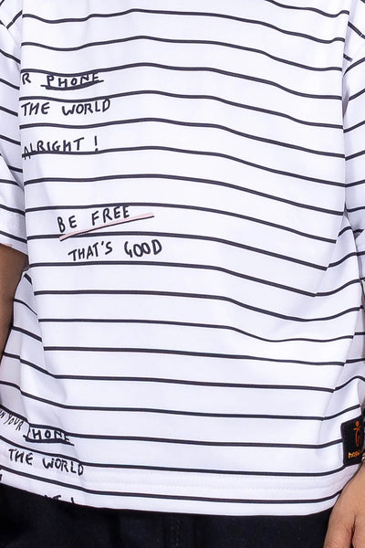 This BOYS STRIPED WHITE TSHIRT offers a comfortable fit for casual wear. Made with looper material, its white and black striped design adds a stylish touch. Perfect for boys looking for a fashionable yet easy-to-wear tshirt.